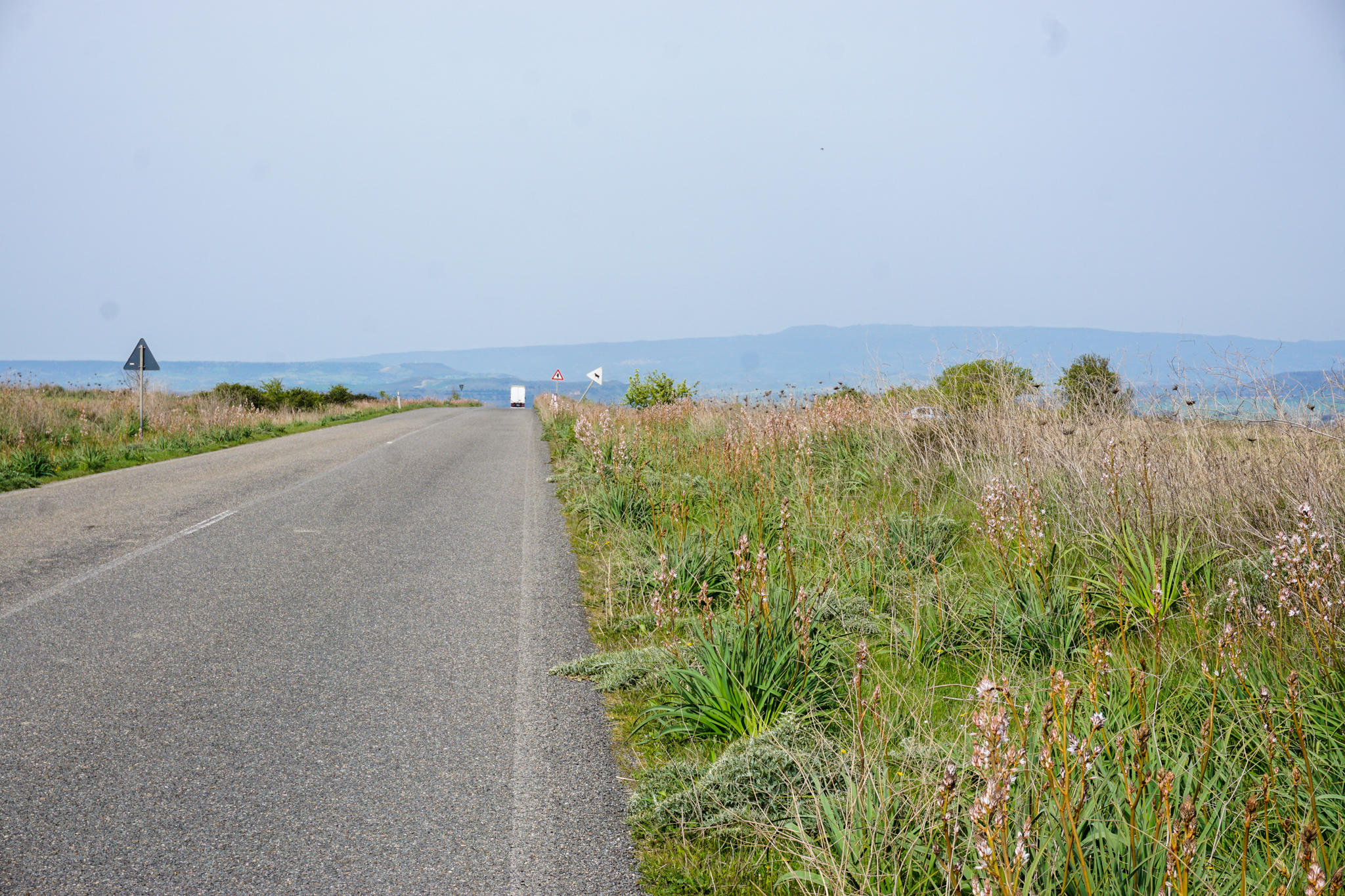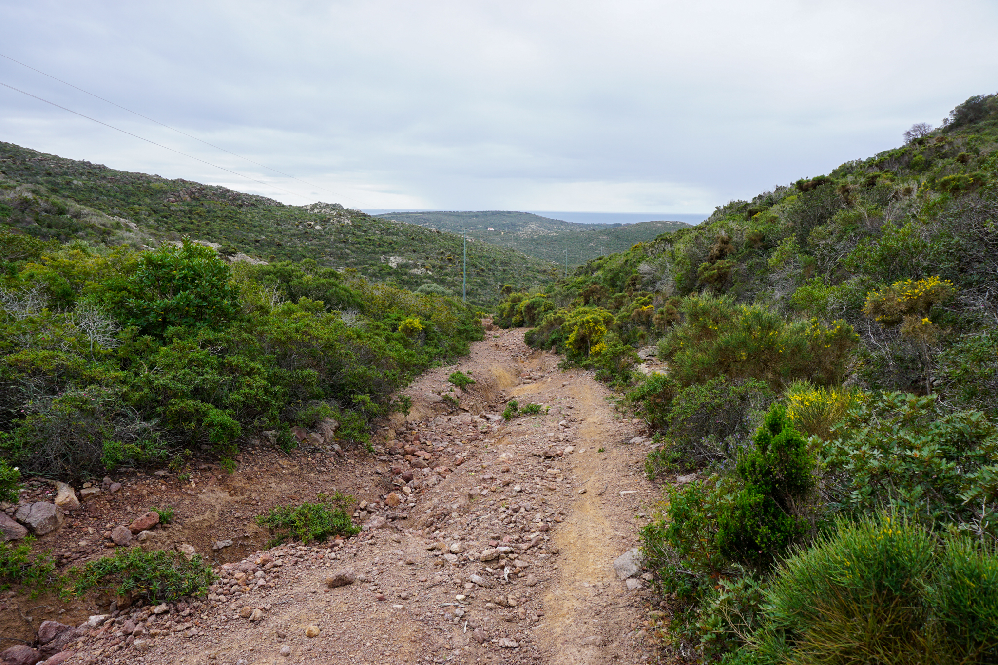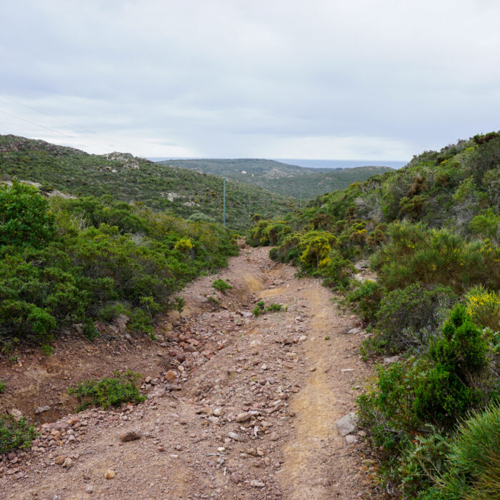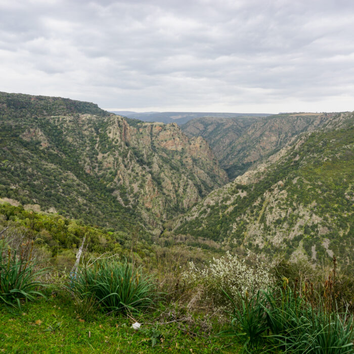 Trotz fast einer Woche Zwangspause ist das Wetter in der Zwischenzeit nicht wirklich frühlingshafter geworden, stattdessen fröstelt man sich in den Bergen bei sieben Grad Celsius durch den Tag und hofft auf warme Kaminfeuer. Gleich nach dem Infekt noch weiter in die Berge vorzudringen erscheint mir deshalb keine besonders gute Idee und ich verwerfe den Routenplan, den ich mit meinen neuen Freunden in Santa Maria Navarrese geschmiedet hatte. Stattdessen orientieren sich meine Etappen in den nächsten Tagen an möglichst günstigen Unterkünften, weshalb ich (so wird mir später gesagt), an eher ungewöhnlichen Orten auf Sardinien Halt mache. Mir jedenfalls gefällt’s: Die Landschaft wechselt zwischen tiefen Schluchten und weiten Hochplateaus, fruchtbaren Talsohlen und karstiger Macchia. Ich komme durch verschlafene Orte, in denen der Tourismus eine eher untergeordnete Rolle spielt – das führt soweit, dass ich eines Abends mit der älteren Dame, die das Bed & Breakfast führt, in dem in jener Nacht übernachte, sardischen Kutteleintopf mit Bohnen und Artischocken esse. Denn als ich schon nach kurzer Zeit von meiner Suche nach irgendeinem offenen Lokal in dem doch verhältnismäßig großen Ort erfolglos zurückkomme, hat sie wohl Mitleid und lädt mich, mit ihr die Reste vom Vortag zu essen. Während wir zuerst noch Bohnen am Kaminfeuer pulen und ich an meinem Italienisch arbeite, läuft übrigens die deutsche endlos-Telenovela „Sturm der Liebe“ in italienischer Synchronisation im Fernsehen…