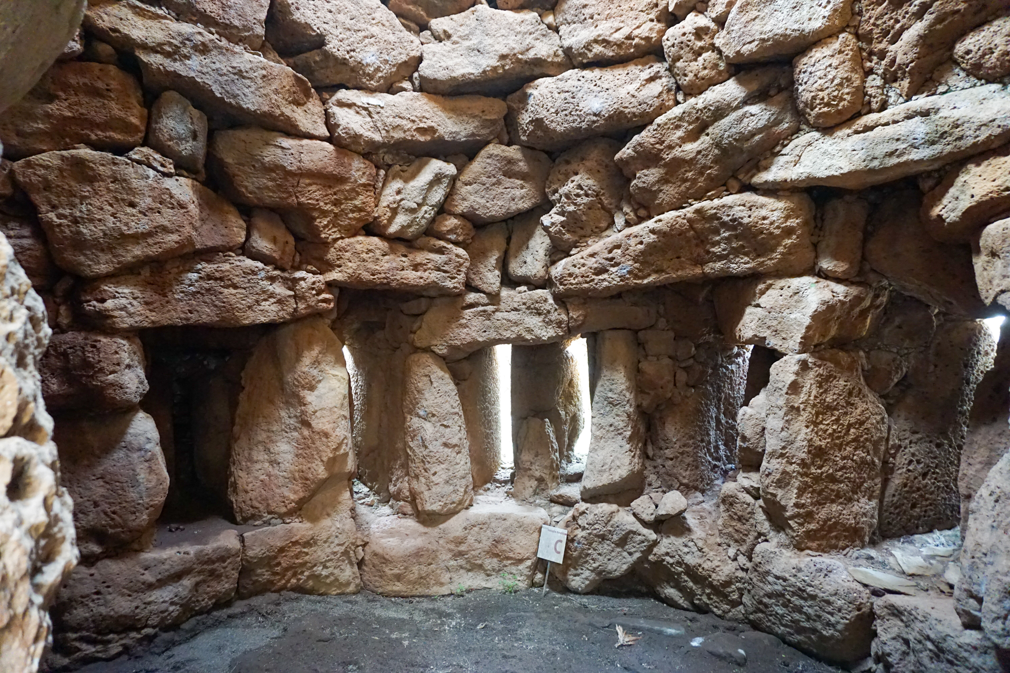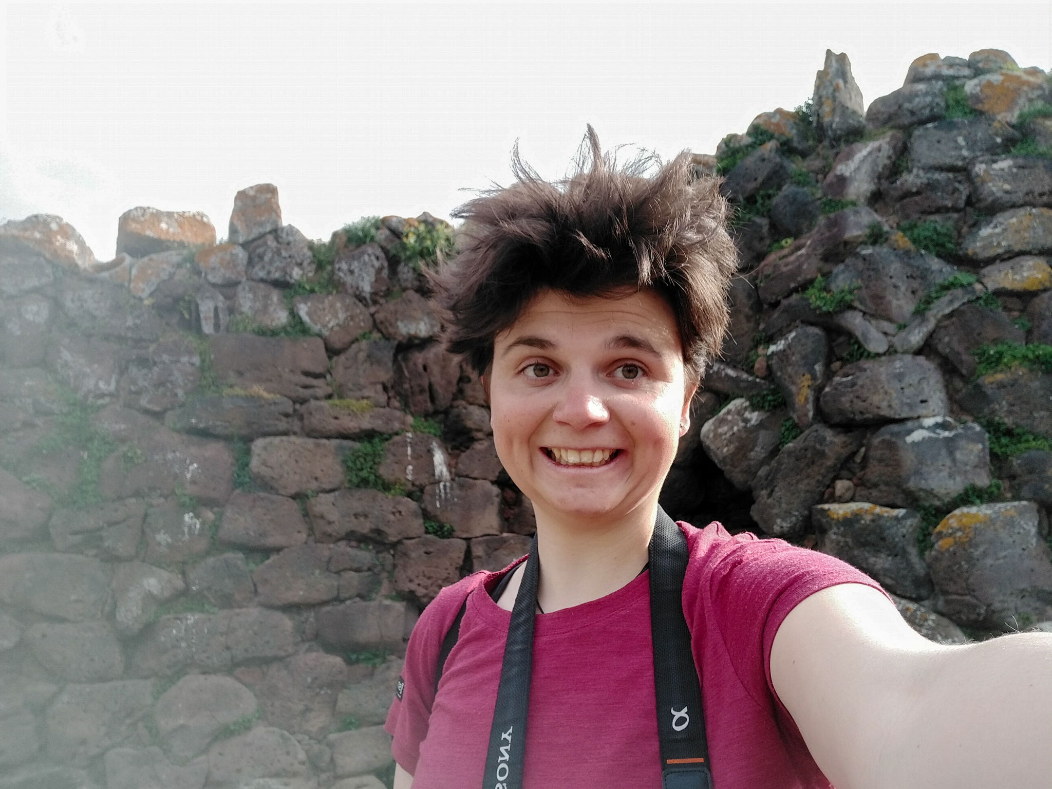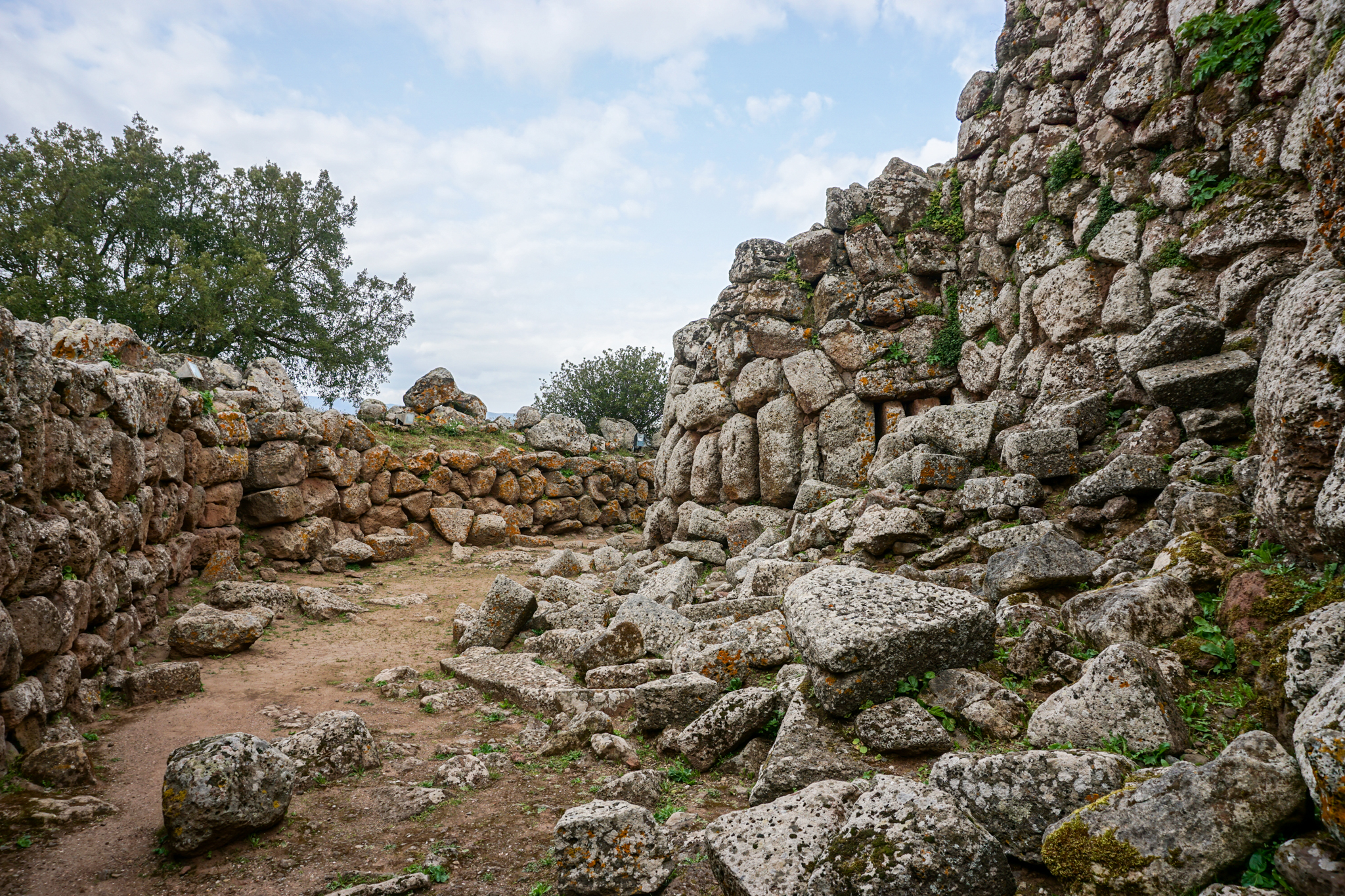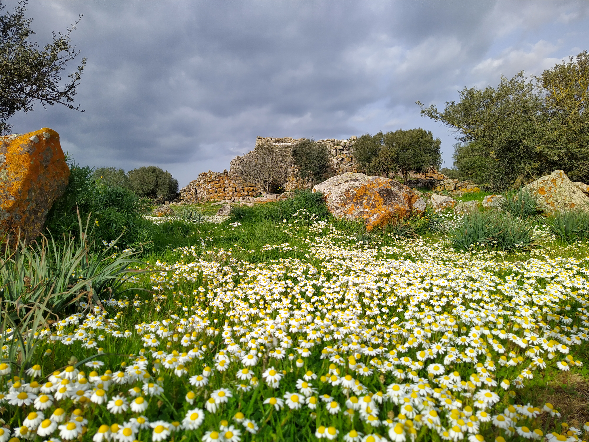 Keine Touristen bedeutet auch: Ich kann als weit und breit einziger Gast eine der am besten erhaltenen Nuraghen der Insel besuchen. Nuraghen sind etwas speziell sardisches: Die prähistorischen Bauwerke gibt es über die ganze Insel verteilt, sie stammen aus der Zeit von etwa 2200 bis 400 vor Christus. Wozu genau sie dienten – zum Beispiel als religiöse Stätten, zum dauerhaften Wohnen oder nur als Rückzugsort bei kriegerischen Auseinandersetzungen – darüber ist sich die Forschung uneins, da es keinerlei schriftliche Zeugnisse gibt. Funde aus der Nuraghenkultur gibt es in großer baulicher Vielfalt, von einzelnen, wenig erhaltenen Gebäuden bis hin zu komplexen, noch heute gut sichtbaren festungsähnlichen Anlagen und Siedlungen. Ich besuche die „Nuraghe Arrubiu“, die auf der offiziellen Tourismus-Seite Sardiniens als „eines der bedeutendsten vorgeschichtlichen Denkmäler des gesamten Westens, die imposanteste Megalith-Anlage der Insel, seltenes Beispiel einer erhaltenen Fünfeckbastion“ beworben wird. Der Name „Arrubiu“ bedeutet soviel wie „der Rote“ und ist auf die Flechten zurückzuführen, die die Steine bedecken und ihnen eine rötliche Farbe geben. Arrubiu wurde etwa 1500 v.Ch. errichtet und ca. 900 v.Ch. nach einem Teileinsturz verlassen. Danach wurde sie mehrmals wieder genutzt, unter anderem von den Römern, von denen man hier zwei Anlagen zum Weinkeltern fand. Die Anlage besteht aus fünf großen Türmen im Inneren, der größte davon war einst dreistöckig und rund 30 Meter hoch, heute misst er nur noch die Hälfte. Sie sind von einem Hof umgeben, an den weitere kleinere Türme in einer Art Verteidigungsring anschließen. All das besteht aus massiven Steinblöcken. Die Kunstfertigkeit, mit der die Menschen von damals es schafften, daraus Kuppeln und mehrstöckige Gebäude zu errichten, ist beeindruckend. Auf den Informationstafeln wird beschrieben, wie die Freilegung funktionierte und was dabei alles gefunden wurde – soweit ich das richtig verstanden habe, konnte man aus den verbrannten Brotkrumen sogar schlussfolgern, wie und mit welchen Zutaten gebacken wurde. Insgesamt also ein sehr lehrreicher und spannender Ausflug und zudem auch sehr hübsch anzusehen inmitten der blühenden Wiesen.