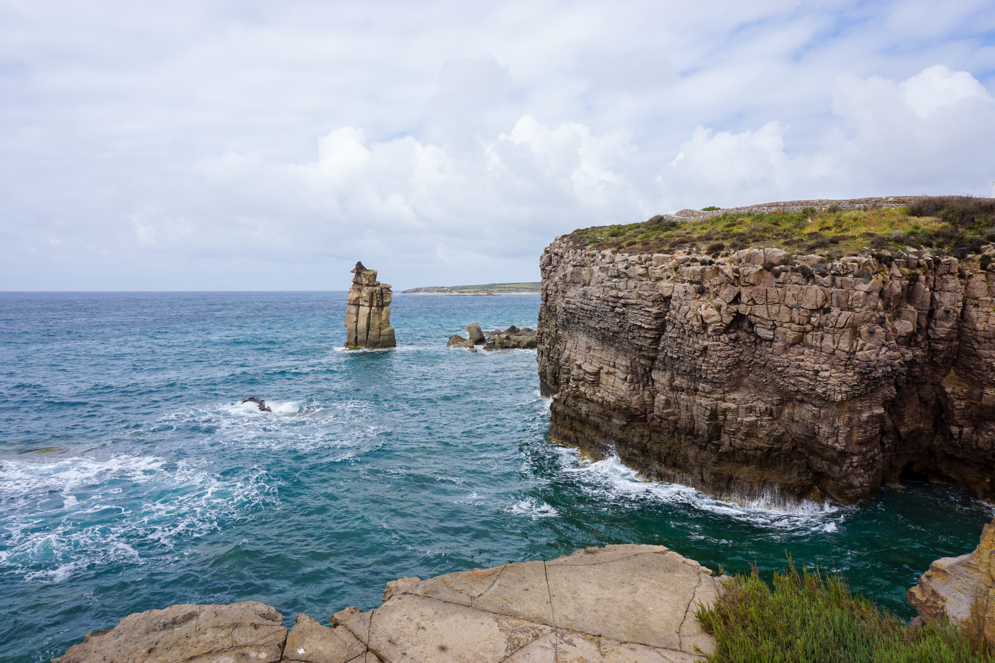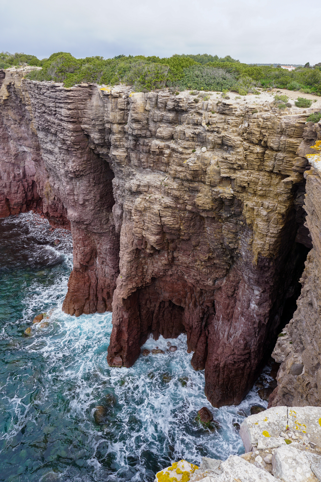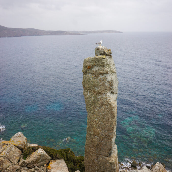 Ein weiterer Abstecher führt mich am Ende meiner Sardinientour noch auf die kleine Insel San Pietro, auch als „Thunfischinsel“ bekannt (Thunfische gibt es hier im Sommer wohl in Hülle und Fülle und entsprechende Festmahle nach dem Schlachten – zu dieser Jahreszeit weilen die Thunfische aber noch anderswo). Auf San Pietro gibt es eigentlich nur den Ort Carloforte mit gut 6000 Einwohnern, ansonsten sind über die 54km² große Insel hauptsächlich einzelne Ferienhäuser und kleine Gehöfte verteilt. Wie ich schnell herausfinde, gibt es auch nur zwei befestigte Straßen – auf einer der beiden fahre ich auch auf direktem Weg zum Capo Sandalo, dem westlichsten Punkt Sardiniens. Im Sommer kann man hier die seltenen Eleonora-Falken beobachten, die nur an sehr wenigen Plätzen im ganzen Mittelmeerraum nisten und deshalb unter strengem Schutz stehen. (Wie die Thunfische warten aber auch die Falken noch auf besseres und wärmeres Wetter auf Sardinien – eine gute Idee!) An diesem Nachmittag trudeln hier nur ein paar Möwen durch die Luft und wissen sich geschickt auf den teils freistehenden Felsen zu inszenieren. Wind und Wellen peitschen gegen die raue Steilküste, man fühlt sich ein bisschen, wie am Ende der Welt.